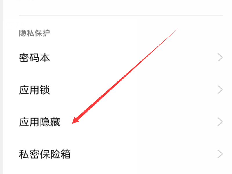 2、点击“应用隐藏”按钮,输入密码后进入应用隐藏的页面。