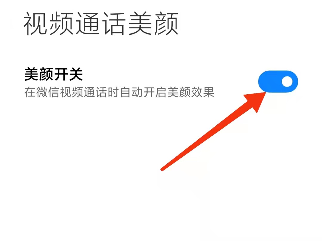 3、将视频通话美颜后面的开关打开即可在微信设置美颜。