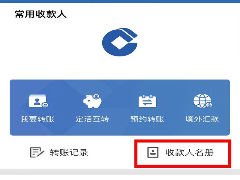 常用收款人指的是和银行卡持有者进行过多次转账交易的用户,以中国建设银行app为例,删除常用收款人的具体操作方式如下: