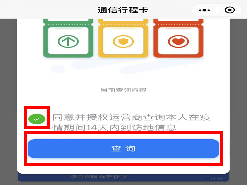 4、进入“通信行程卡”界面后,勾选同意授权再点击“查询”即可。