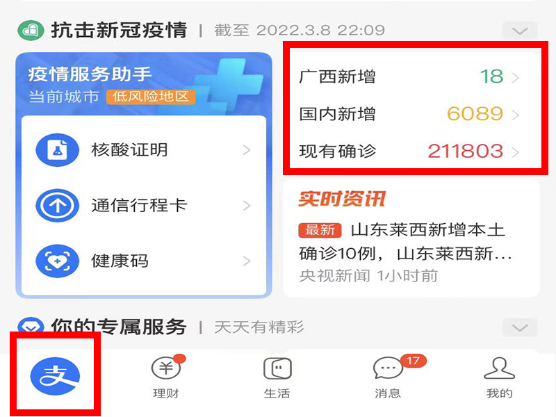 疫情地图能够让用户更直观地看到我国各地区的疫情程度,在支付宝中查看疫情地图的具体操作方式如下: