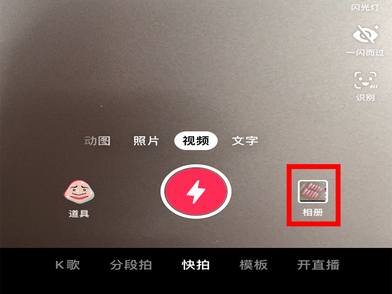 1、打开抖音,进入拍摄界面,再点击右下角的“相册”,进入视频选择界面。