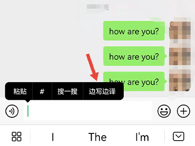 2、在打字框中输入并发送三句英文,长按输入框,获取边写边译功能。