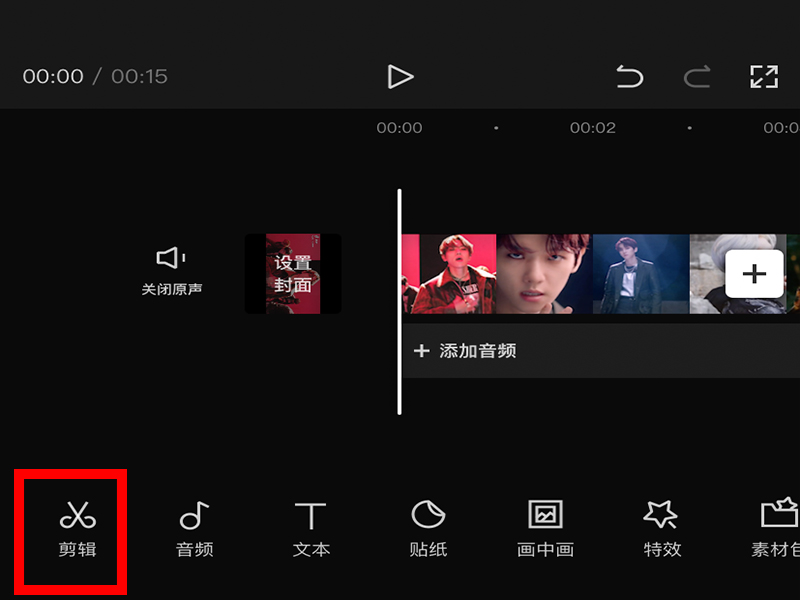 2、选择好视频,进入“视频编辑”界面后,点击“剪辑”,进入“剪辑”界面。