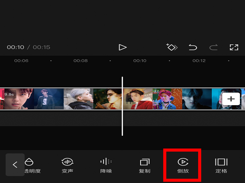 4、再回到“剪辑”界面,选择想要进行倒放的视频,点击“倒放”即可。