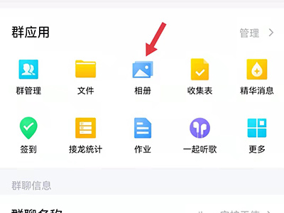 2、在页面的群应用信息框中,点击“相册”,进入页面。