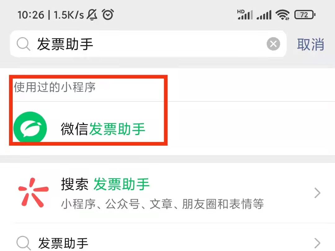 1、打开微信,点击微信主页面的搜索图标,搜索“微信发票助手”。