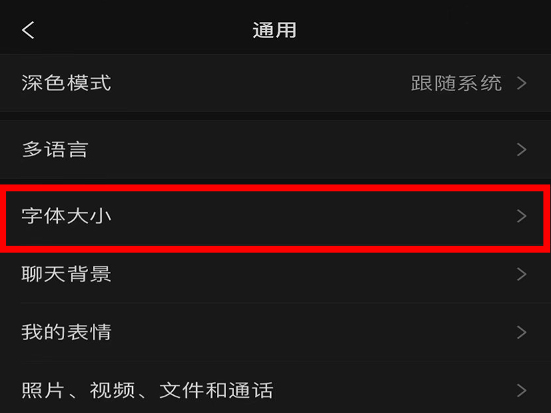 3、进入“通用”界面后,点击“字体大小”,进入“设置字体大小”界面。