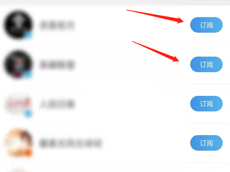 3、点击右上角“+”号标志,进入订阅页面,可以对用户进行订阅或取消订阅。