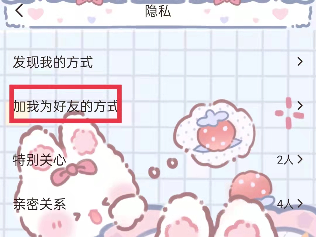 3.进入“隐私”设置界面,选择“加我为好友的方式”。