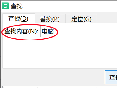 2、在查找内容后边的方框内输入想要查找的内容,这里查找“电脑”。