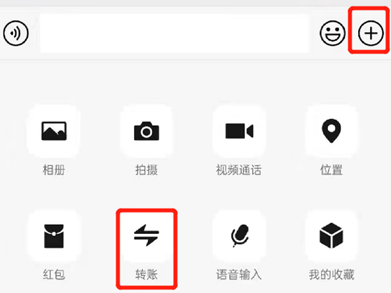 3、点击“+”号,再点击“转账”,进入转账页面向好友转账。