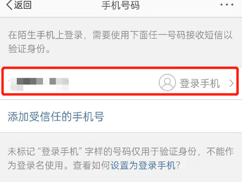 5、点击手机号,再点击“更换登录手机号”,按要求操作即可更换手机号。