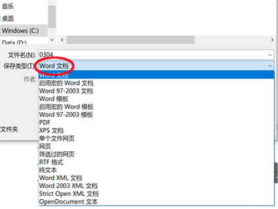 2、单击“保存类型”,下拉,选择保存的类型。