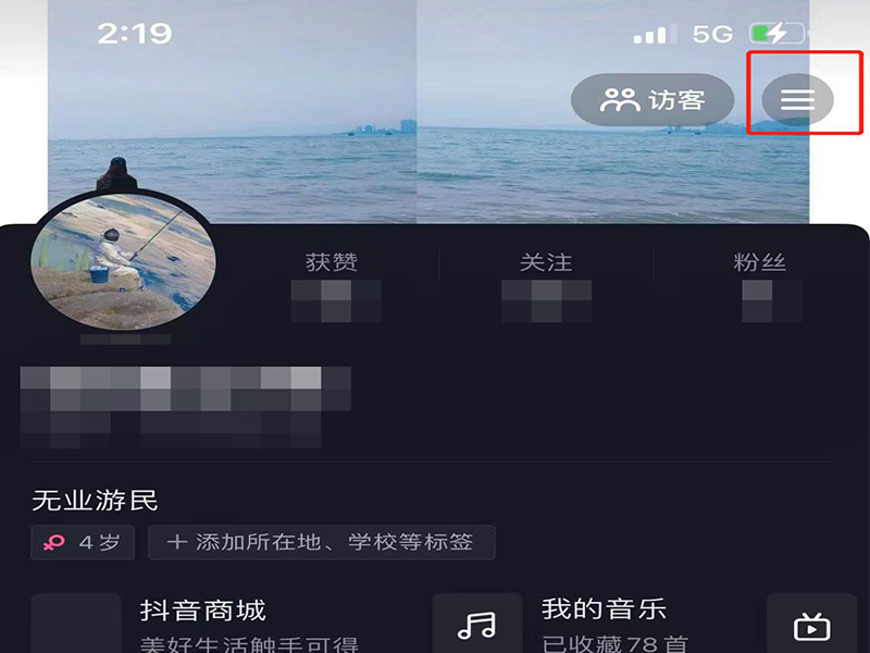 1、打开抖音app,在我的个人页面上,点击右上角三横图标,打开抖音工具栏。