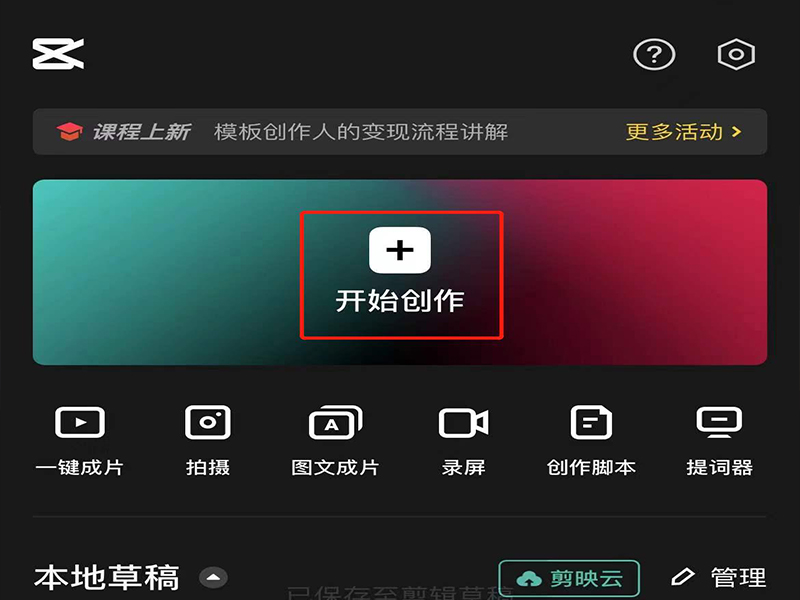 1、打开剪映app,点击“开始创作”,进入素材筛选页面。