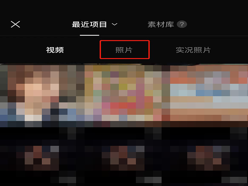 2、在素材筛选页面上,点击“照片”,进入照片筛选页面。