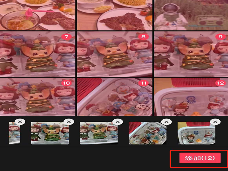 3、在照片筛选页面上,勾选需要制作的照片,并点击“添加”,即可将所有照片添加至编辑页面中。