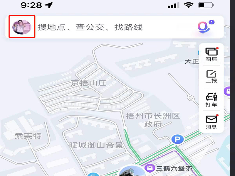 1、打开百度地图app,点击左上角的用户头像,进入个人中心界面。