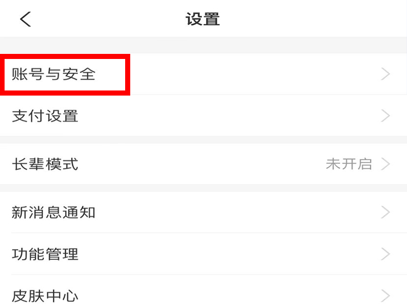 2、进入“设置”界面后,点击“账号与安全”,进入“账号与安全”界面。
