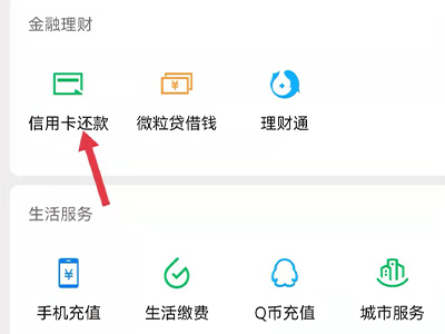 2、在服务页面中,点击“信用卡还款”,进入页面。