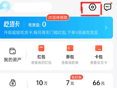 1、打开饿了么,切换至我的页面,点击右上角设置按钮。