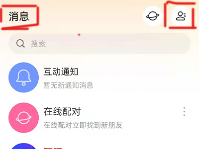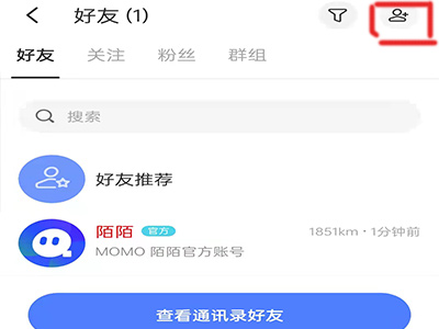 1、打开陌陌,切换至消息页面,点击右上角小人头图标。