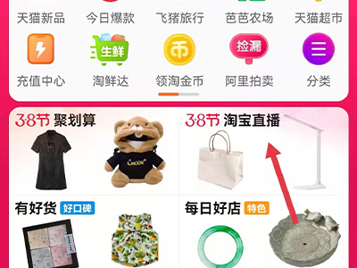1、打开手机淘宝app,在主页面的信息栏中点击“淘宝直播”,进入页面。