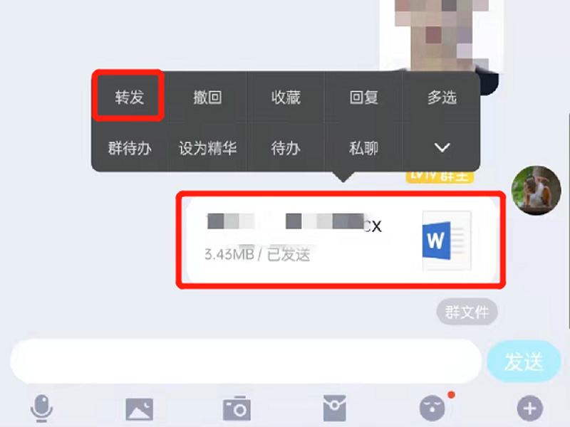 手机如果没加老师QQ,想要直接发文件给老师可以通过转发的方式发送。具体操作方法如下: