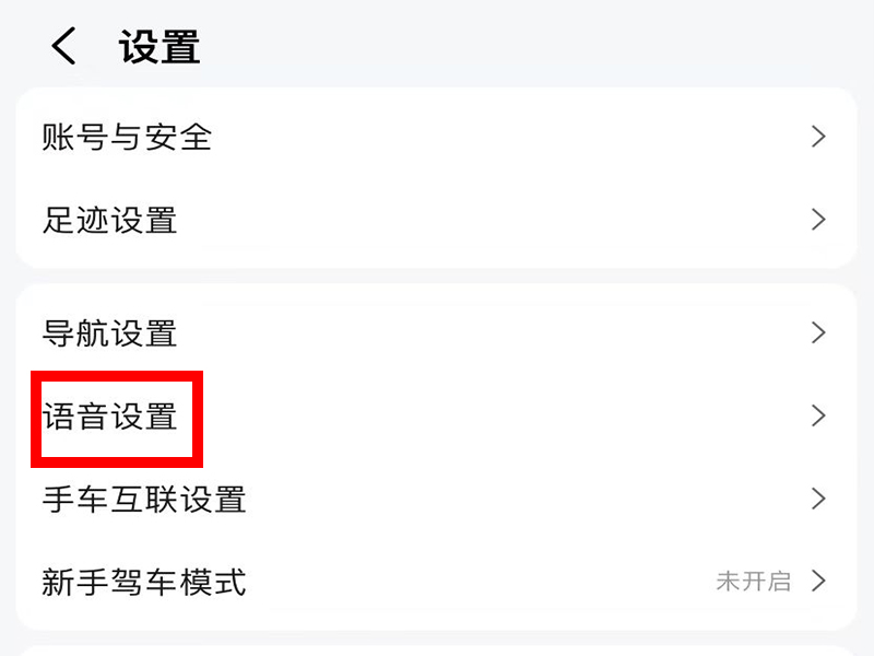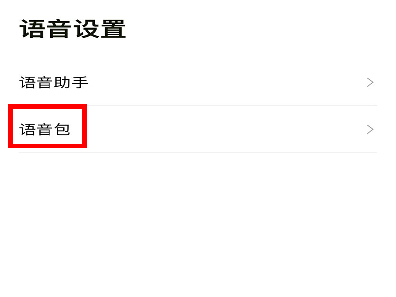 2、进入“设置”界面后,点击“语音设置”,进入“导航语音包”界面。