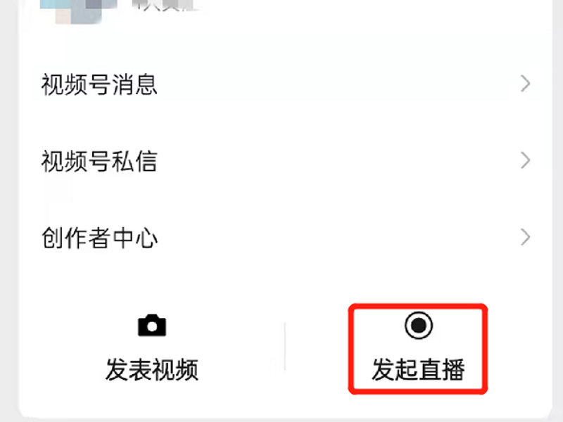 3、点击右上角头像标志,再点击“发起直播”进行直播。