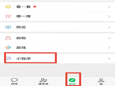 1、打开微信app,切换到“发现”页面,打开下方的“小程序”。