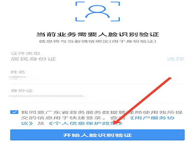 4、点击确定,勾选同意协议,点击“开始人脸识别”,选择“下一步”。