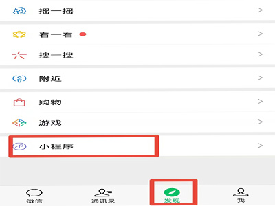 1、打开微信app,切换到“发现”页面,打开下方的“小程序”。