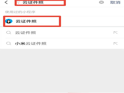 2、点击右上方的搜索图标,输入“云证件照”,点击“搜索”。