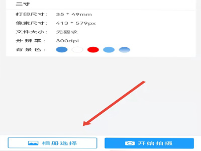 4、在二寸证件照页面,点击左下角的“相册选择”,勾选人像照片,点击“完成”。