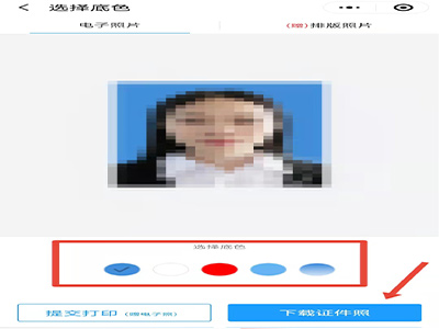 5、系统会自动将照片尺寸调整为二寸照,可按照个人需求选择照片底色,再点击“下载证件照”即可。