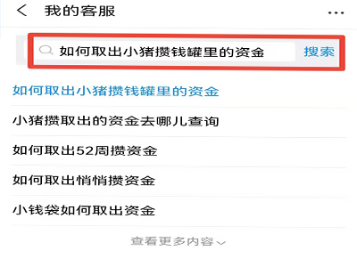 2、在搜索框输入“如何取出小猪攒钱罐里的资金”,点击“搜索”。