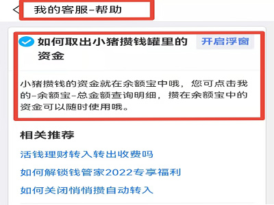 3、在“我的客服-帮助”页面,即可看到取出小猪攒钱罐资金的提示。