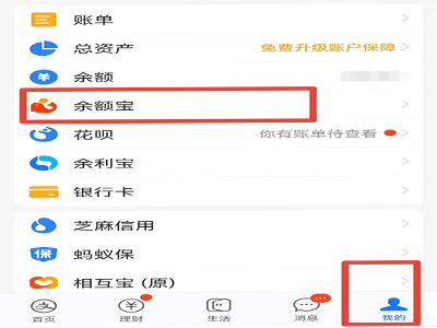 4、返回支付宝“我的”页面,点击进入余额宝界面。