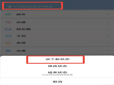 新版微信可以通过“设个新状态”功能来修改状态。微信状态是微信8.0版本中新更新的内容,用户设置状态后可在聊天界面中展示自己的状态。改微信状态的操作方法如下: