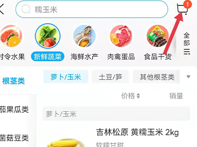 2、在列表中选择自己需要的蔬菜,完成后点击右上角的购物车图标,进入页面。