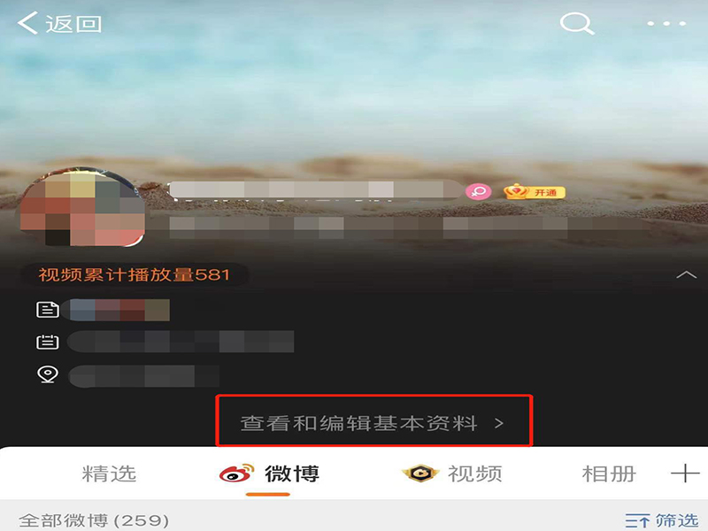 2、在个人微博主页上,点击“查看和编辑基本资料”,进入编辑资料页面。