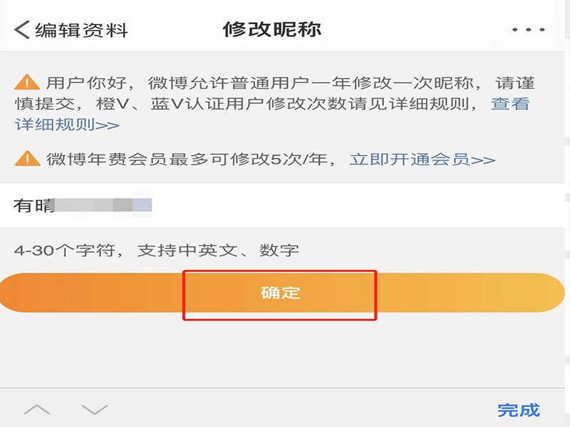 微博是不能无限制改名的,对于普通的微博用户一年只有一次改名的机会,而成为微博年费会员则最多可修改5次。微博修改名字的具体操作如下: