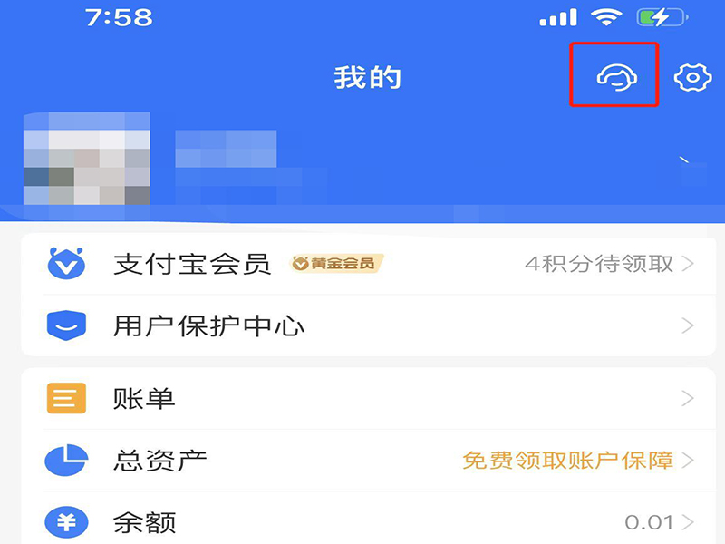 1、打开支付宝app,在我的个人页面上点击客服图标,进入我的客服页面。