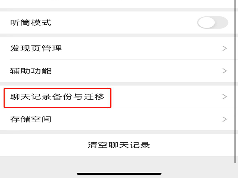 4、在聊天记录备份与迁移页面上,选择“迁移聊天记录到另一台设备”,进入聊天迁移页面。