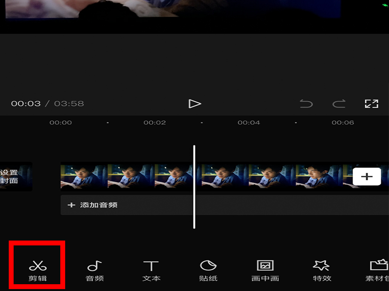 3、进入“视频编辑”界面后,点击“剪辑”。