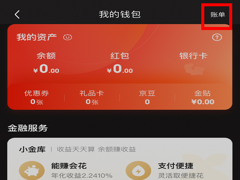 2、进入“我的钱包”界面后,点击右上角的“账单”。