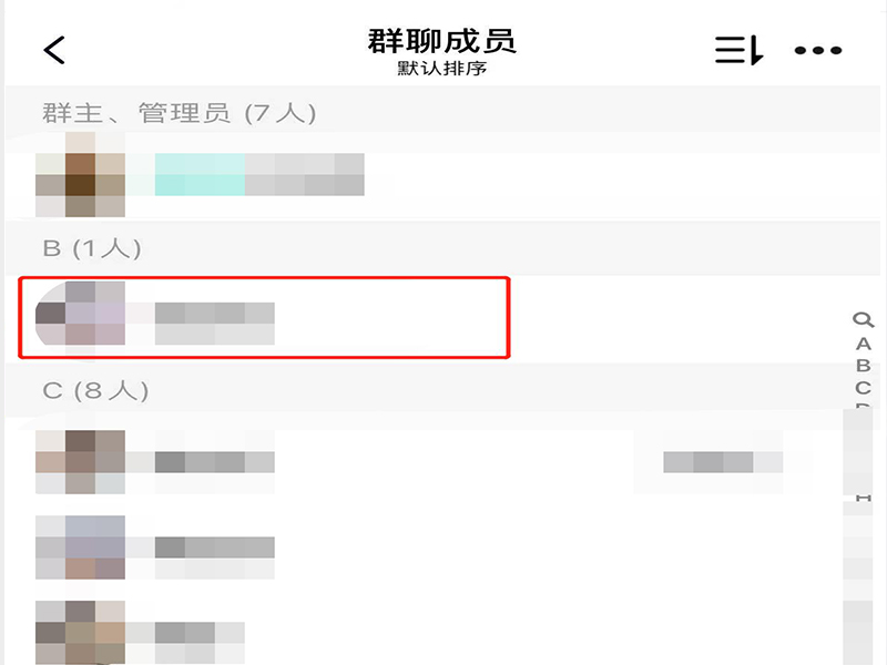 4、在群聊成员页面上,选择点击一名群成员,进入群成员设置页面。