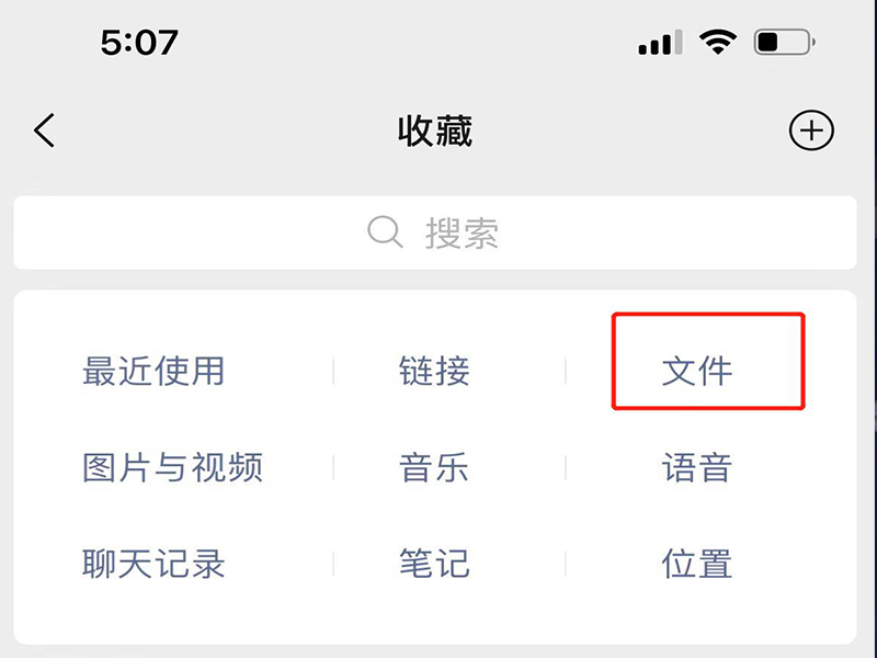 4、在收藏页面上,点击“文件”,进入收藏文件页面。